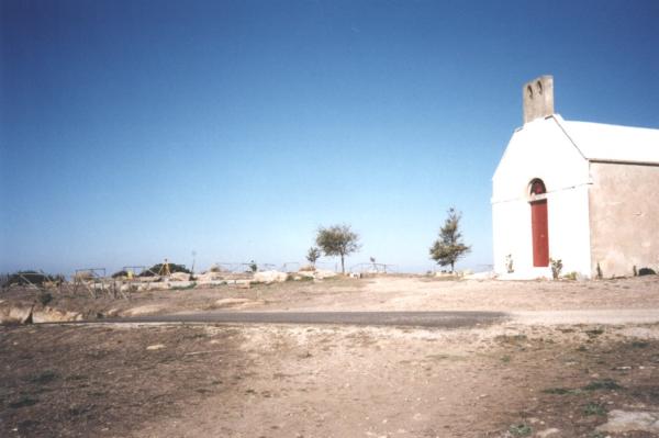 Centrino di tipo "GPS C" fissato su roccia affiorante a sud – ovest della chiesetta, verso il bordo del pianoro.
