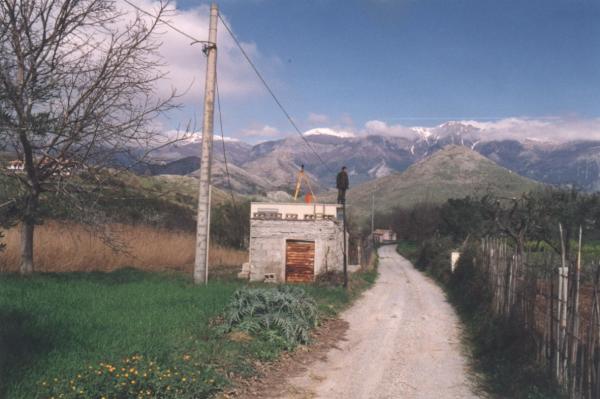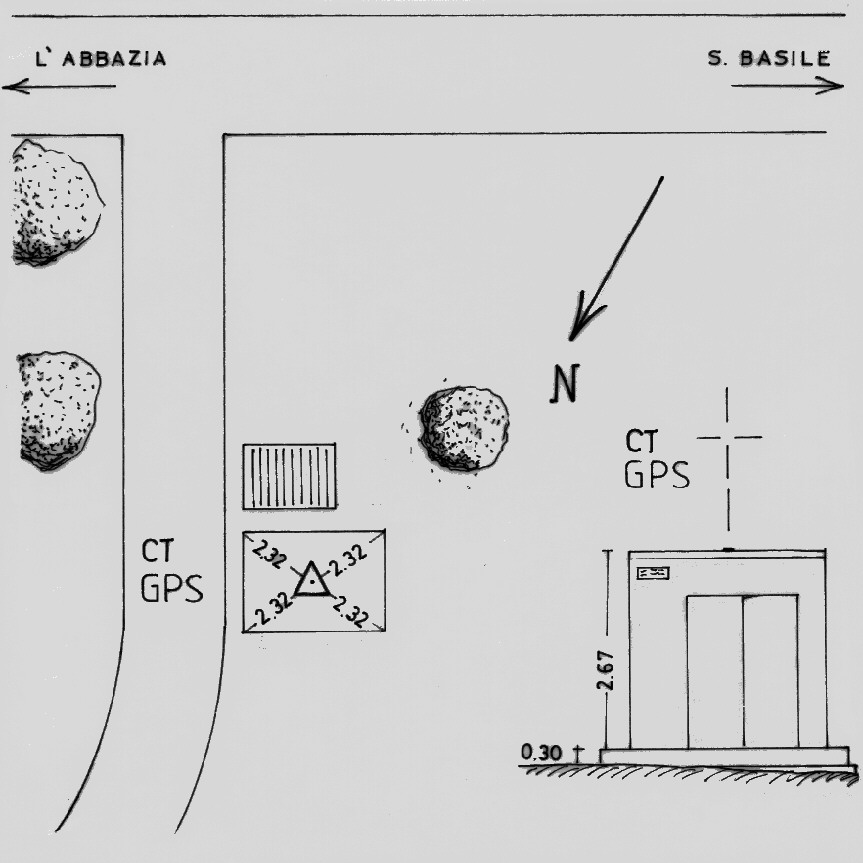 Centrino di tipo "GPS C" infisso al centro della copertura della cabina dell'E.N.E.L., nei pressi dell'Abbazia del paese di S. Basile.
