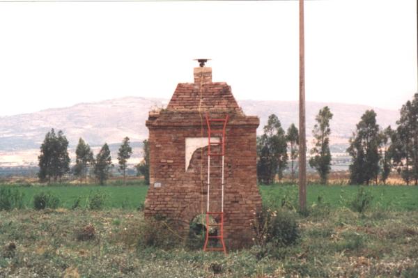 Centrino di tipo "GPS A" fissato su piastra metallica cementata alla sommità di un pilastrino in calcestruzzo e mattoni sovrastante la torretta, e posto in corrispondenza dell'asse geometrico della stessa, a circa 200 metri nord-est dell'Azienda Agricola Pollinello (individuata sulla cartografia dal toponimo "Il Porro").