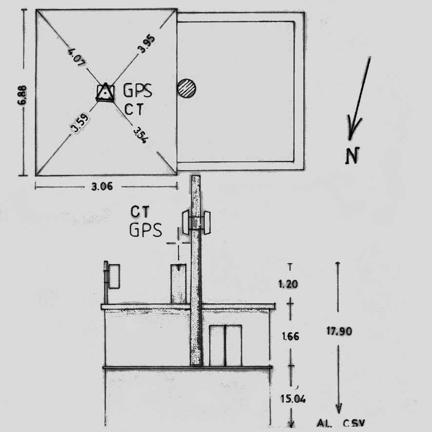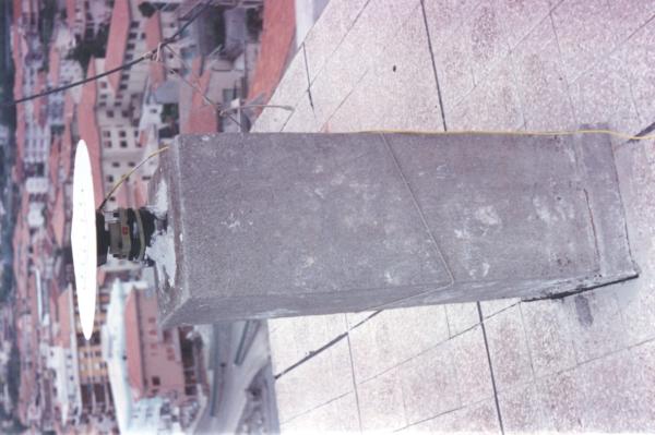 Centrino di tipo "GPS C" cementato al centro del pilastrino, posto sulla copertura piana della parte sopraelevata della torre.