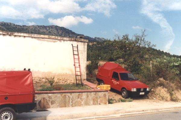 Centrino di tipo "GPS C" fissato alla sommità del muro perimetrale in cemento del cimitero di Tertenia, in prossimità dello spigolo nord – est.