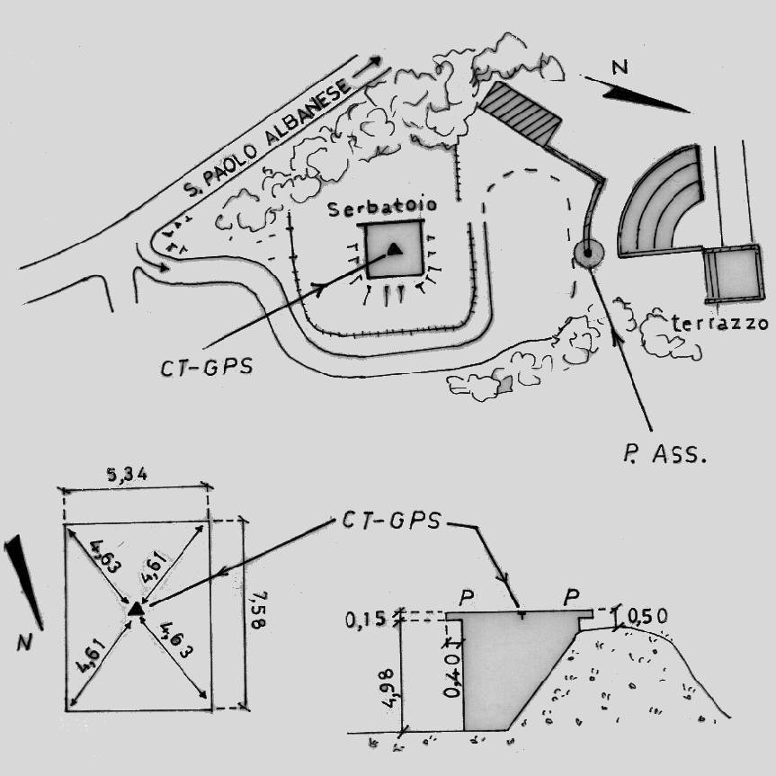 Centrino di tipo "GPS C" fissato al centro e alla sommità della copertura del serbatoio vecchio dell'acquedotto comunale di S. Paolo Albanese.