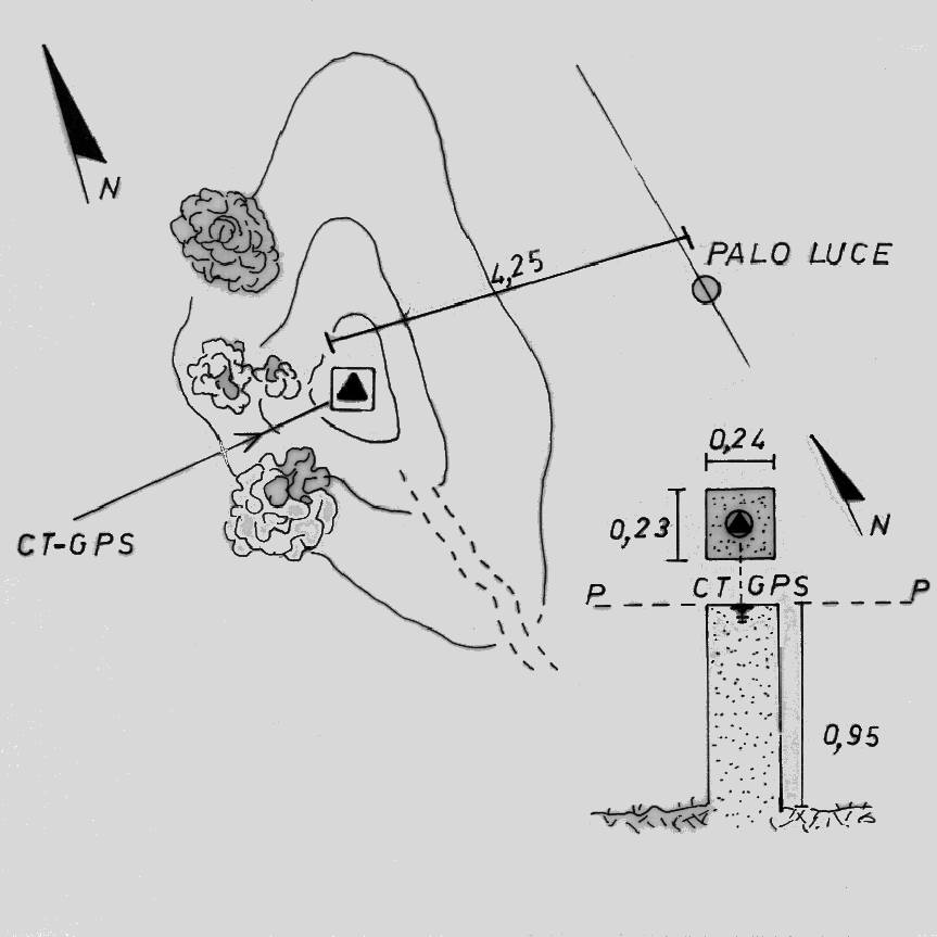 | materializzazione | Centrino di tipo "GPS A" fissato sul centrino di superficie posto alla sommità ed in asse ad un pilastrino in muratura ubicato sulla cima del poggio omonimo. |