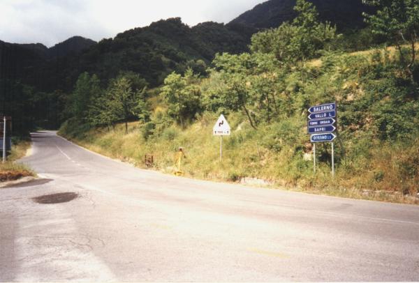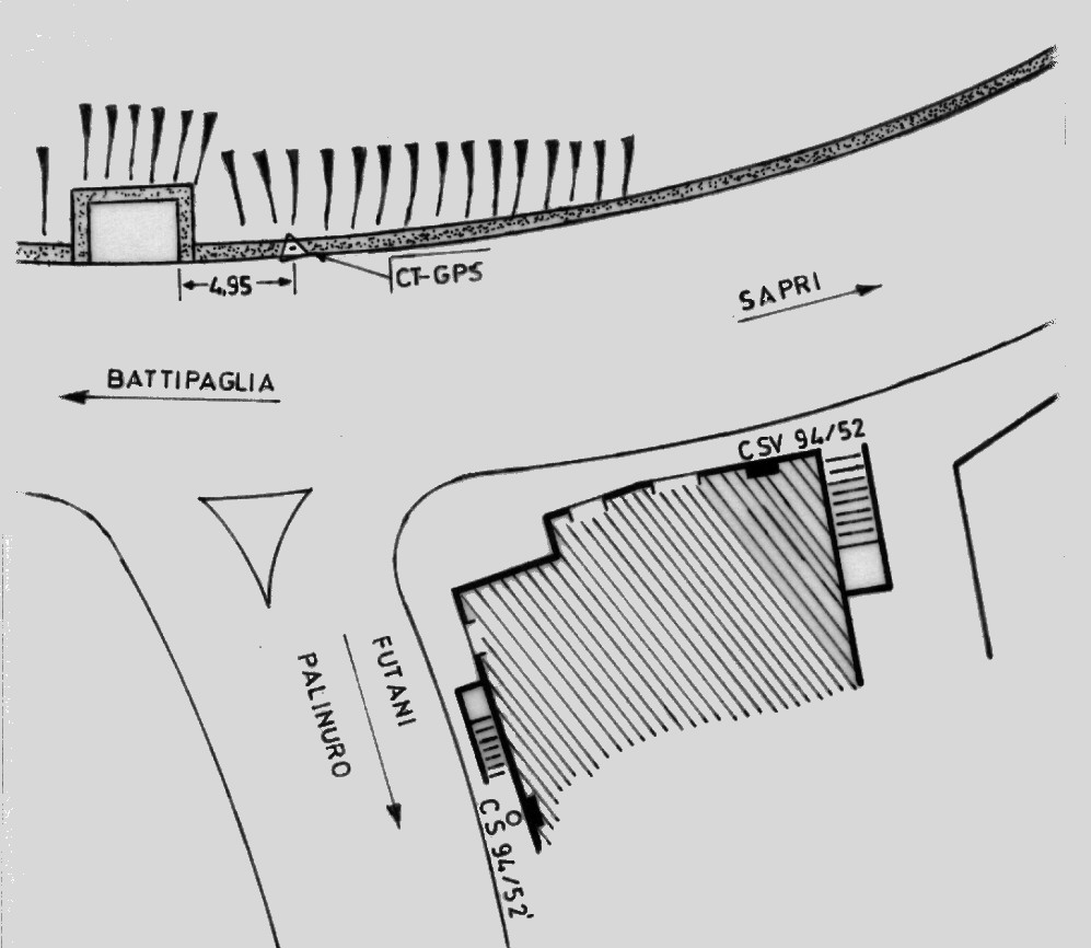Centrino del tipo "GPS C" infisso sul cordolo in cemento di fronte al bivio per Futani – Palinuro sulla S.S. 18.