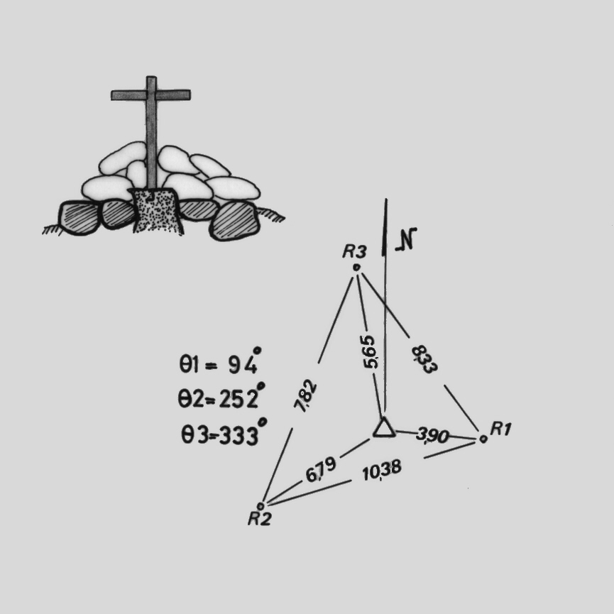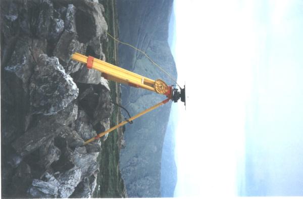 Centrino di tipo "GPS A" fissato su preesistente centrino IGM del tipo di fondo, cementato su roccia affiorante. Riferimenti: 3 centrini metallici.