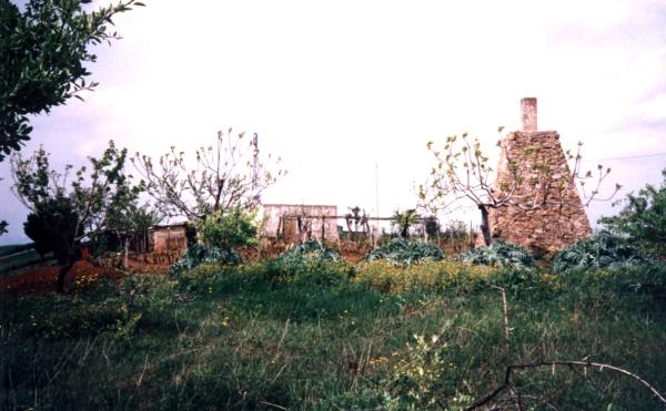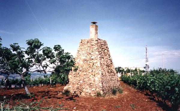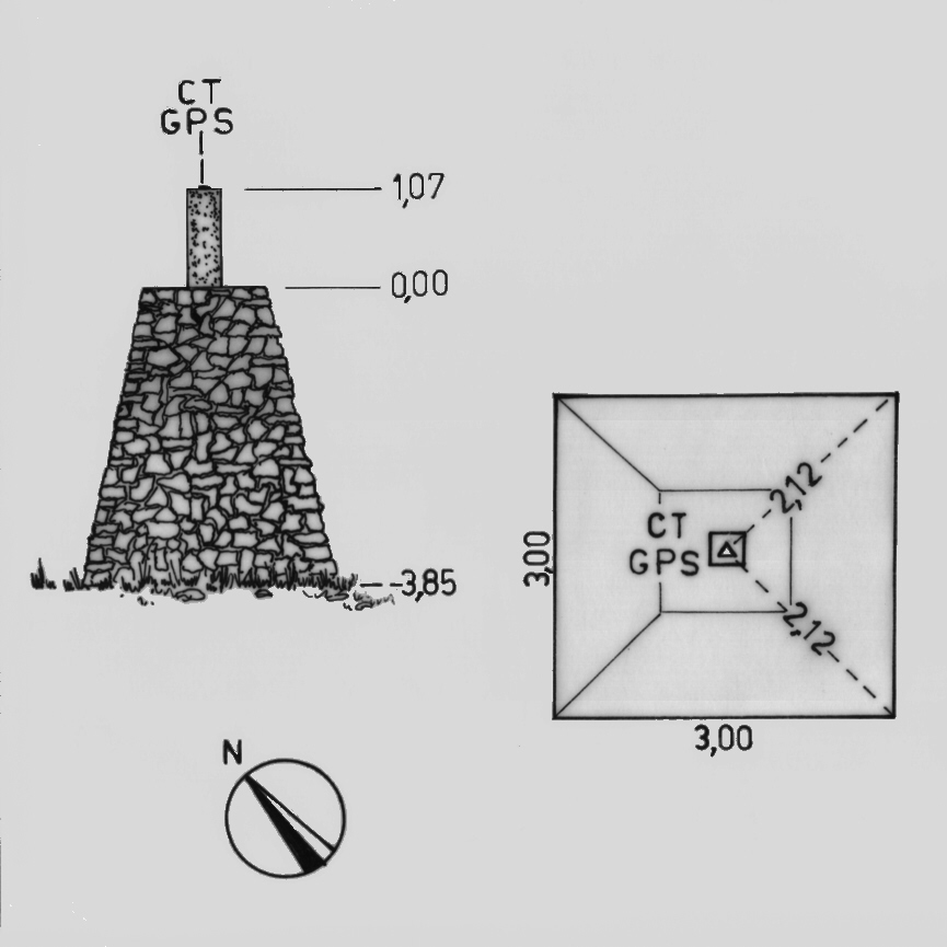 Centrino di tipo "GPS A" incollato su centrino di fondo alla sommità di un pilastrino eretto su basamento tronco piramidale in muratura di pietrame.