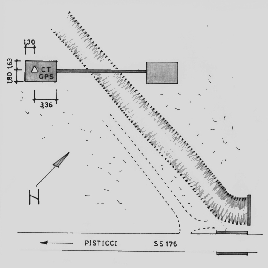 Centrino del tipo "GPS C" infisso sulla spalla in cemento della condotta di attraversamento situata nelle vicinanze della centrale di sorveglianza.
