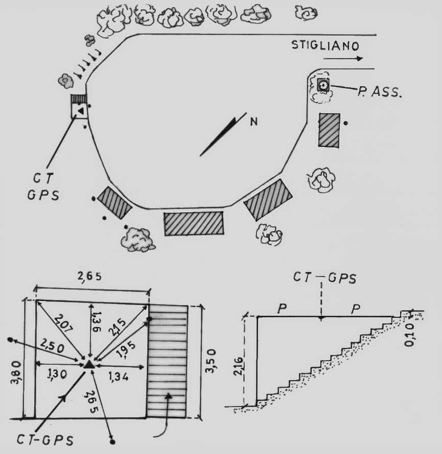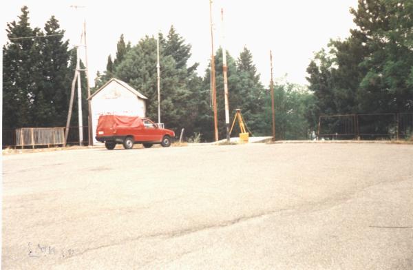 Centrino di tipo "GPS C" fissato alla sommità del casotto in cemento al lato nord del piazzale sul M. La Serra e allo stesso livello del piano stradale.