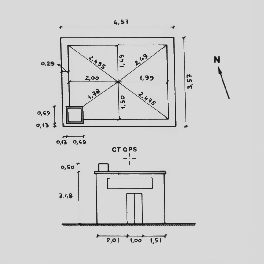 Centrino di tipo "GPS C" fissato al centro della soletta di copertura di un deposito dell'Amministrazione Provinciale di Matera sulla strada provinciale "Salandra – Ferrandina".