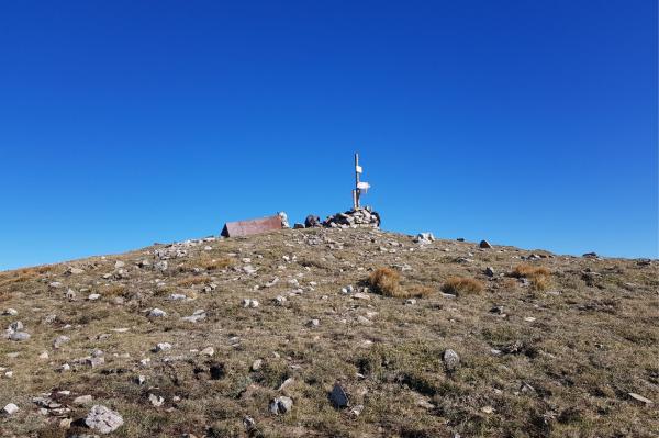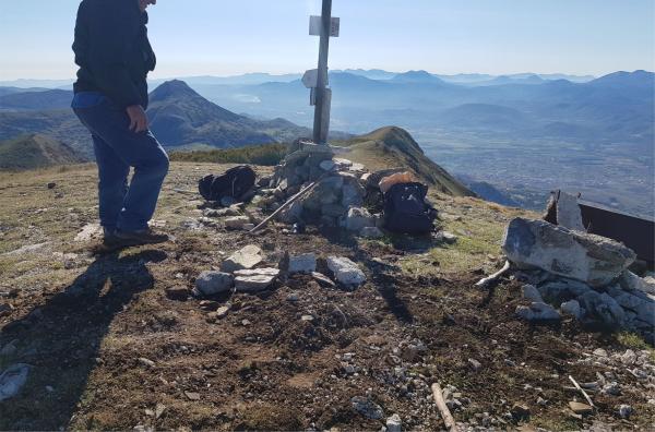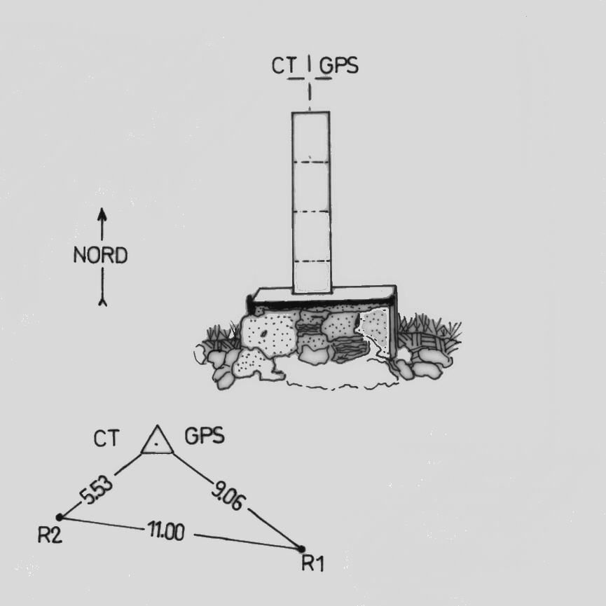 Centrino di tipo "GPS A" fissato in corrispondenza del centro geometrico del pilastrino in ferro a sezione triangolare posto alla sommità del monte che si eleva a nord, nord – ovest di Marsico Vetere.