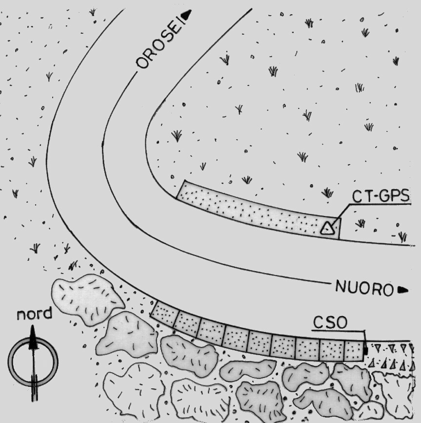 | materializzazione | Centrino del tipo "GPS C" infisso sul muretto a valle (lato nord) della S.S. 129 in località Pappadosa. |