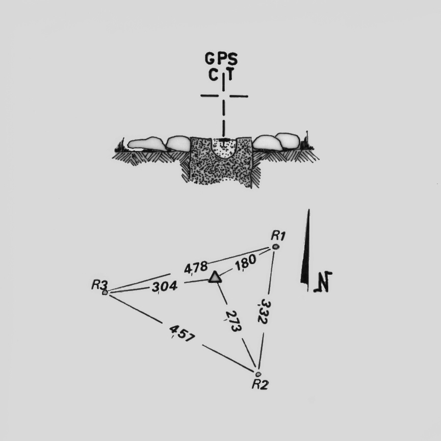 | materializzazione | Centrino del tipo "GPS A" fissato su preesistente centrino IGM del tipo di fondo cementato nella roccia alla sommità del monte. Riferimenti: 3 centrini metallici fissati su rocce affioranti. |