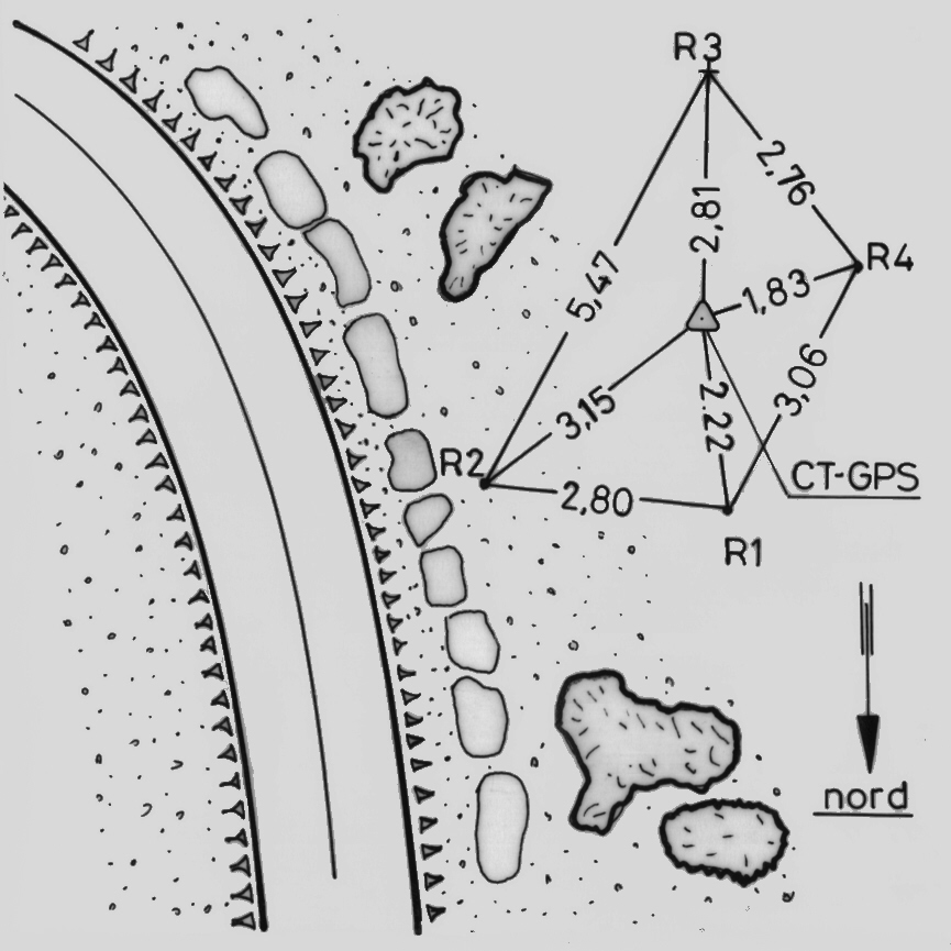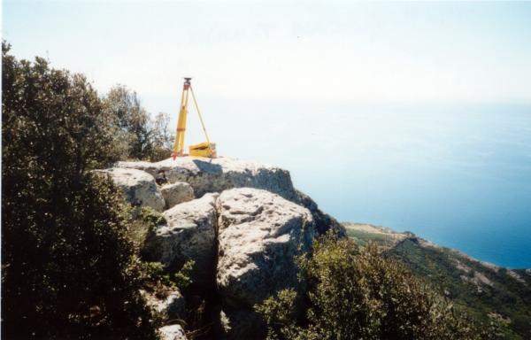 | materializzazione | Centrino del tipo "GPS A" incastonato nel preesistente centrino IGM del tipo di superficie cementato su di un grosso masso sporgente verso il mare. Riferimenti: R1, R2, R4 (centrini metallici), R3 (croce incisa su roccia), anomalie magnetiche e distanze (R1= 356°, 2,22 m; R2= 60°, 3,15 m; R3= 185°, 2,81 m; R4= 256°, 1,83 m). |