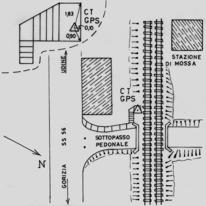 | materializzazione | Centrino in acciaio inox del tipo "GPS da livellazione" infisso nell'ultimo gradino della scala di accesso ai binari. |