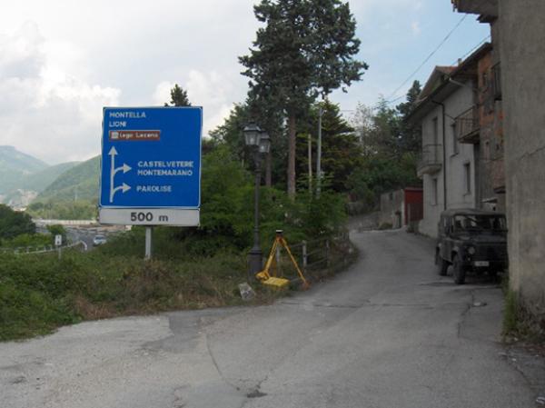 | materializzazione | Centrino del tipo "GPS C" infisso sul cordolo in cemento armato del vecchio tratto della S.S. Ofantina, ora abbandonato, di fronte alla vecchia scuola materna, attualmente adibita a casa – famiglia. |
