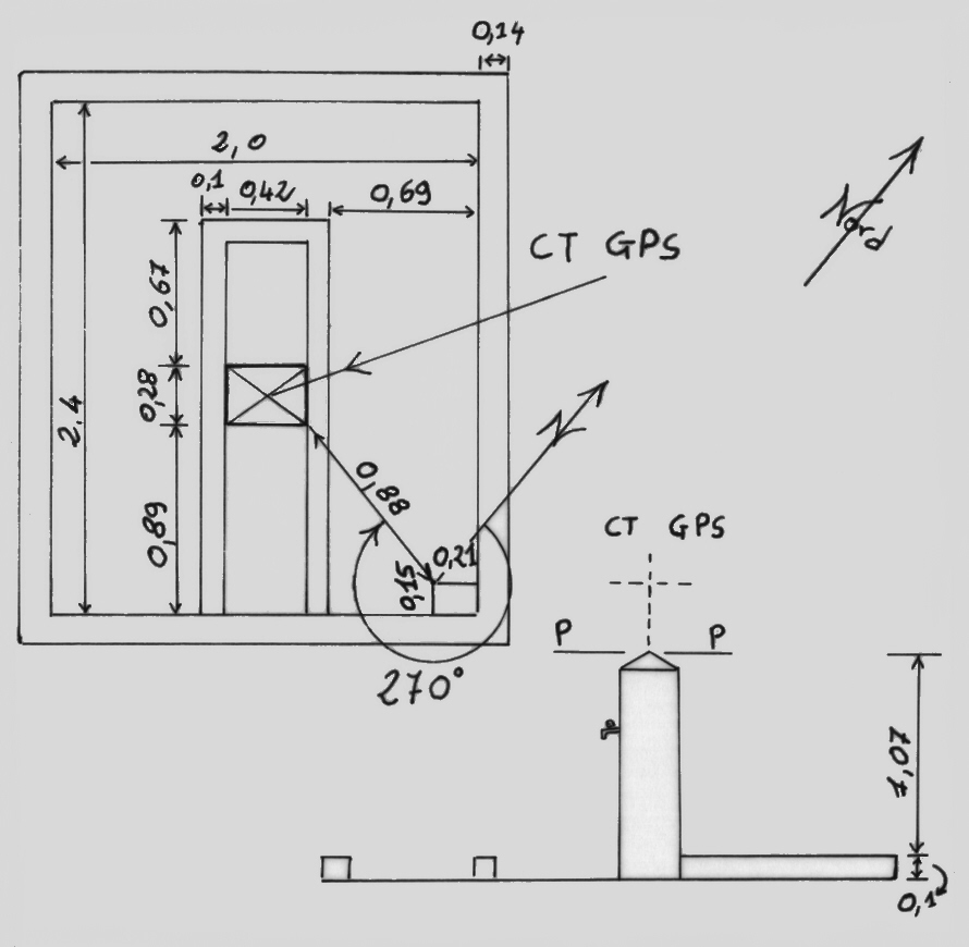 | materializzazione | Centrino di tipo "GPS C" fissato sull'apice del monolite di pietra costituente la fontana situata in Piazza Marconi. |