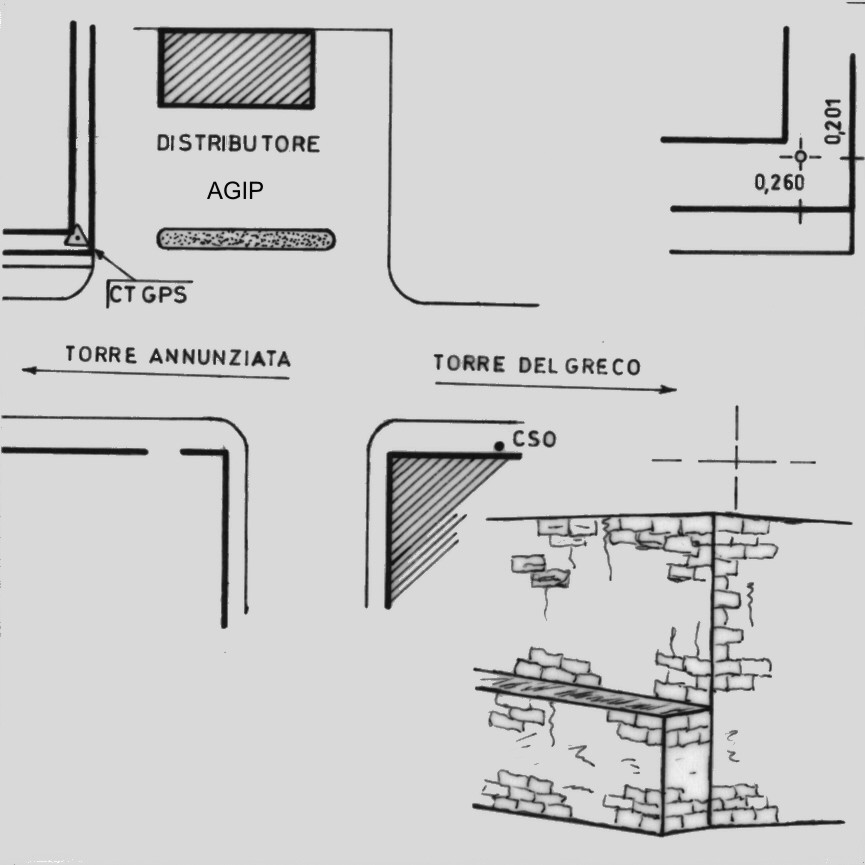 | materializzazione | Centrino del tipo "GPS C" infisso sul muro a retta all'angolo tra la S.S. 18 ed il distributore IP ubicato di fronte alla Chiesa del Buon Consiglio in Contrada Leopardi. |