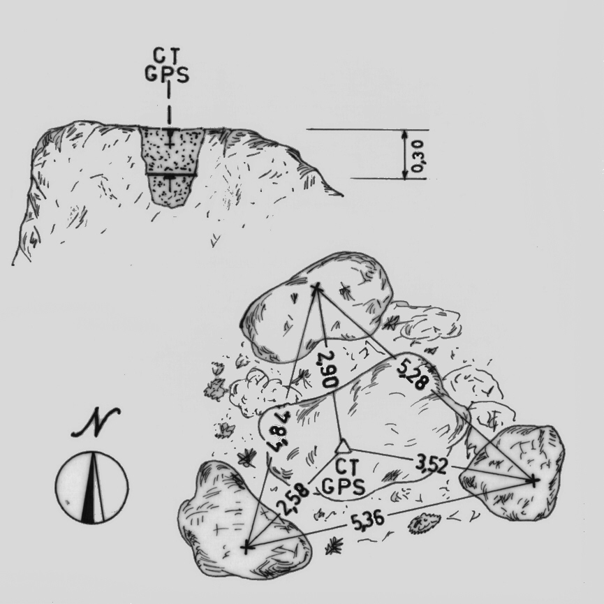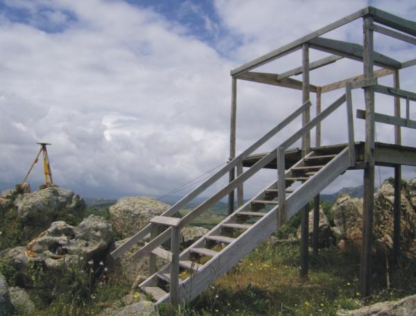 | materializzazione | Centrino del tipo "GPS A" fissato su preesistente centrino IGM del tipo di superficie cementato in una roccia sita sul punto più alto del rilievo. Riferimenti: tre centrini metallici. |