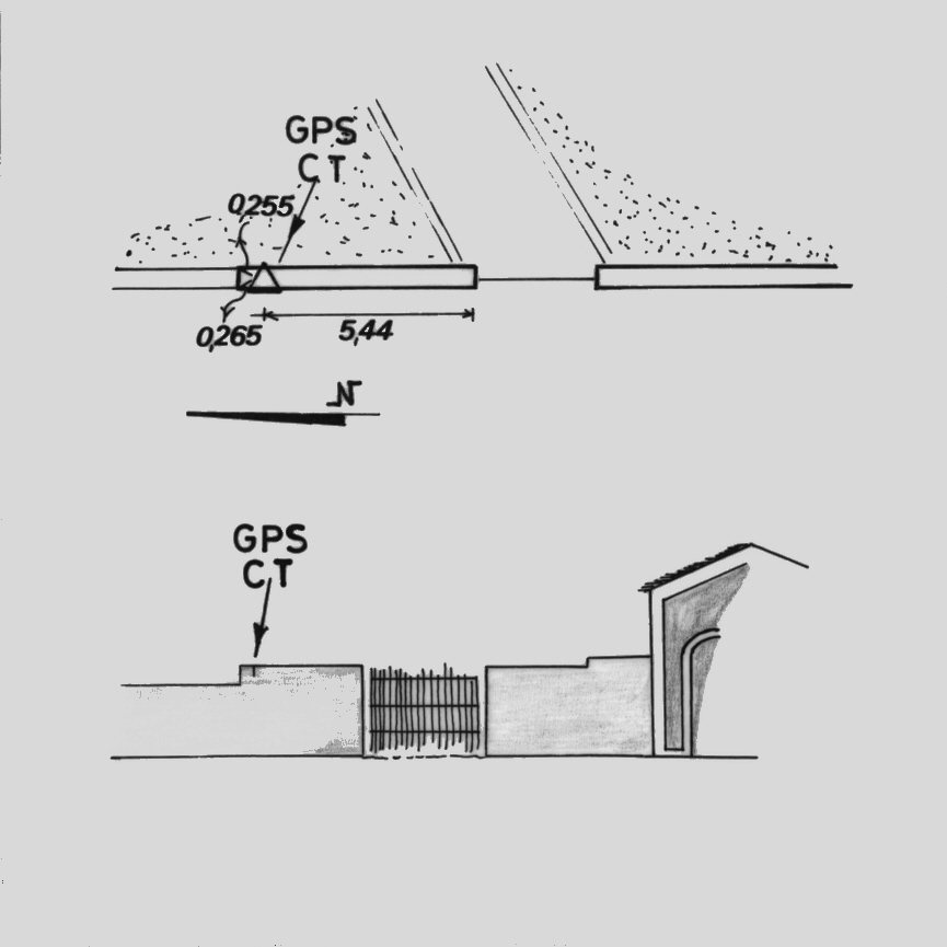 Centrino di tipo "GPS C" fissato sul muro a retta che delimita il cimitero comunale.