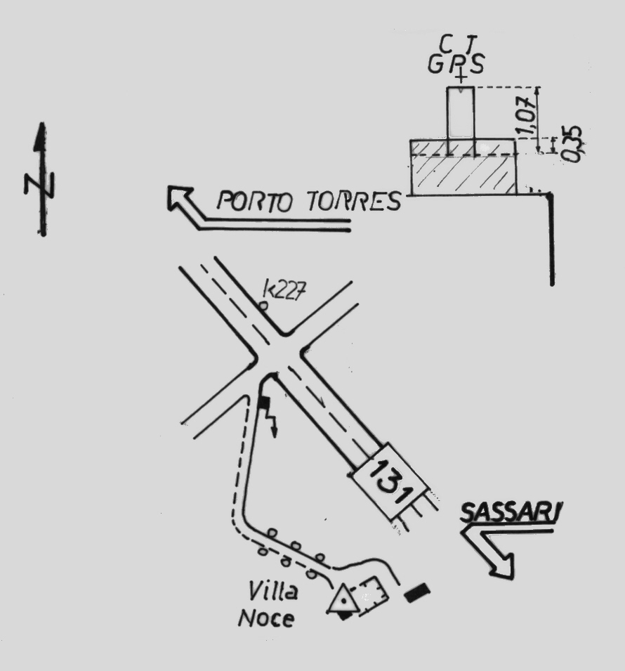 | materializzazione | Centrino del tipo "GPS A" fissato su preesistente centrino IGM del tipo di superficie, alla sommità del pilastrino in muratura con sottostante coassiale centrino di fondo a livello del pavimento, posto nel centro della terrazza più alta di una villa in località omonima.. |