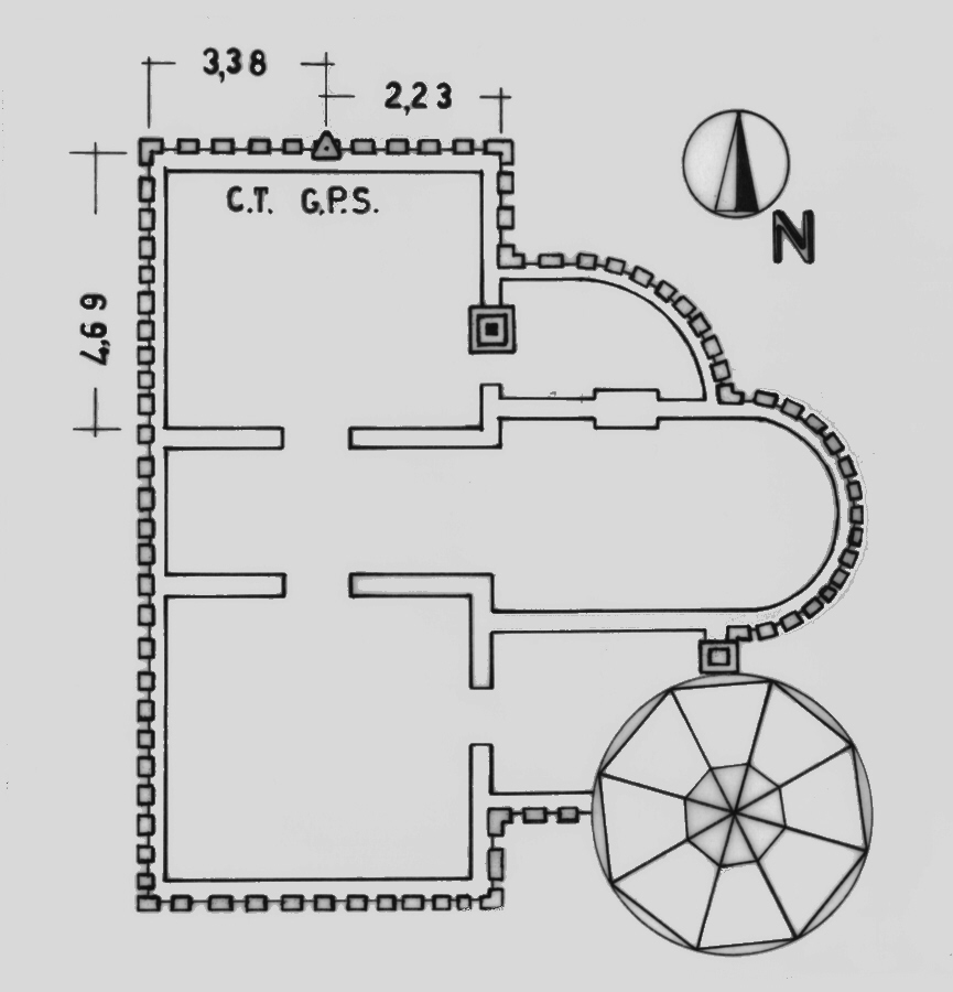 | materializzazione | Centrino di tipo "GPS C" fissato sul sesto merlo dallo spigolo ovest del lato nord della terrazza della villa Delvecchio. |