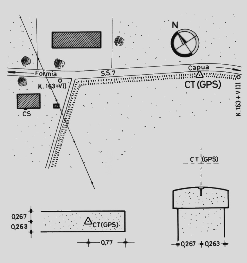 Centrino del tipo "GPS C" fissato alla sommità del ponticello in calcestruzzo sito sulla S. S. 7 all'altezza del km 163.770.