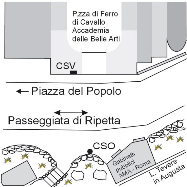 [{"simbolo_contrassegno":"B1","materializzazione":"(CSO) – Bullone infisso nella parete in pietra di fianco ai gabinetti pubblici, di fronte all'arco d'accesso all'Accademia."},{"simbolo_contrassegno":"V3","materializzazione":"(CSV) – Piastrina in ghisa IGM infissa sulla facciata volta sulla Passeggiata di Ripetta, a sinistra dall'arco d'accesso."}]