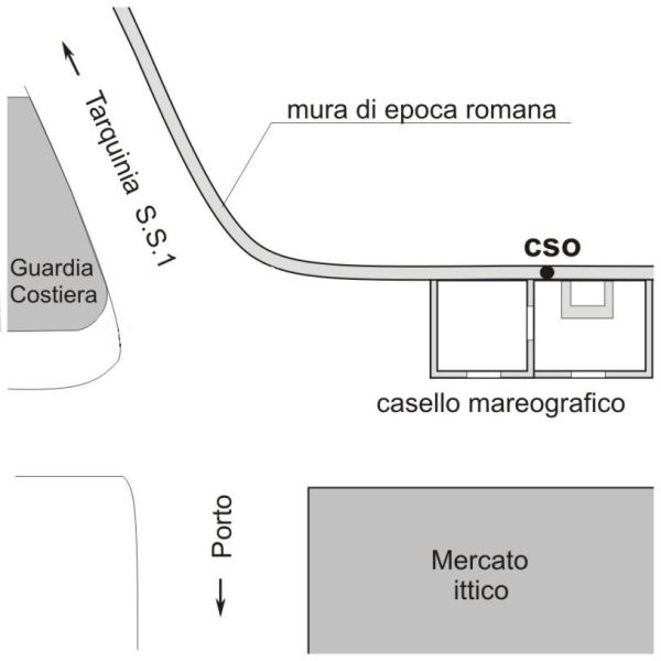 | Contrassegni | [{"simbolo_contrassegno":"B6","materializzazione":"(CSO) – Centrino inox IGM95 di tipo \"C\" infisso alla sommit\u00e0 di un' antico muro di epoca Romana al disopra del mareografo."}] |
