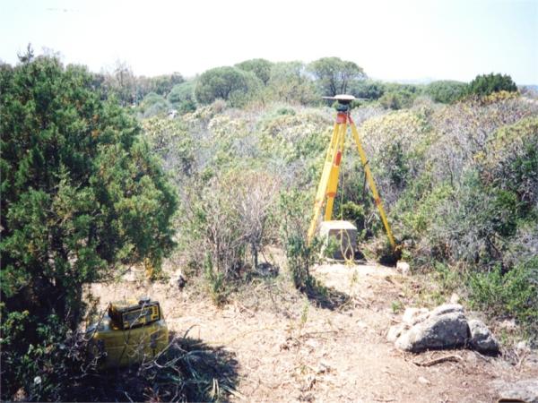 | materializzazione | Centrino metallico anonimo alla sommità di un pilastrino in calcestruzzo alto 30 centimetri e sottostante centrino in vetro su piattaforma in cemento di cm 90x90x30. Riferimenti (anomalie magnetiche): cabina ENEL (spigolo nord), 275°; roccia più alta a m 35,20, 323°; torretta di C. Garibaldi, 158°. |