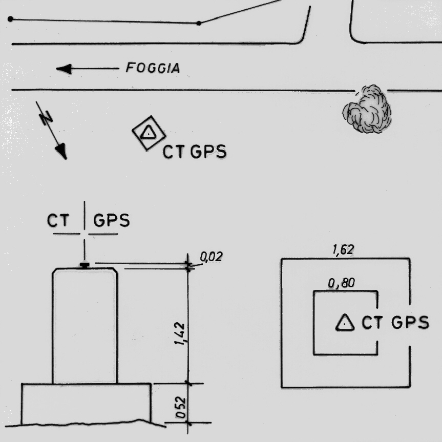 Centrino di tipo "GPS A" fissato in asse al centrino metallico alla sommità del pilastrino.