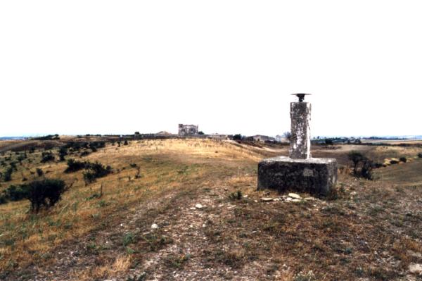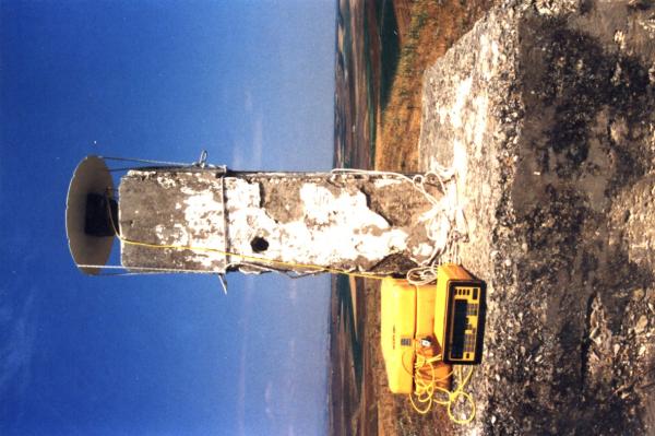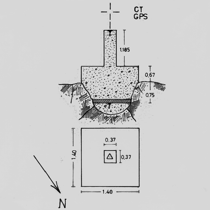 Centrino di tipo "GPS A" incollato su centrino di superficie, in asse a pilastrino in muratura e sottostante centrino di fondo.