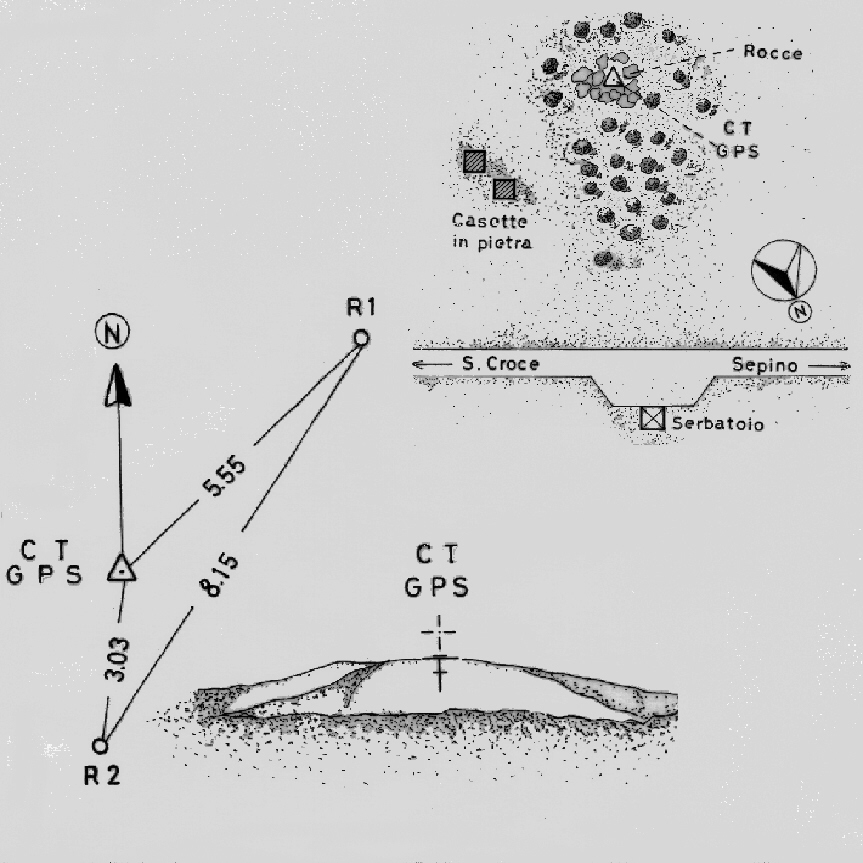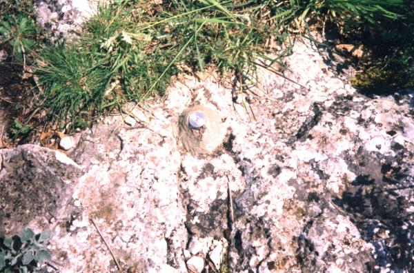 | materializzazione | Centrino di tipo "GPS A" fissato su centrino IGM del tipo di superficie, cementato su roccia affiorante alla sommità del monte. |