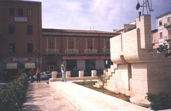 | materializzazione | Bulloncino in acciaio inox da livellazione del tipo GPS infisso in una pietra perimetrale del monumento ubicato nella Piazza della Stazione. |