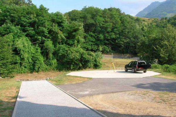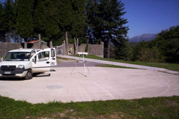 Centrino in acciaio inox murato in asse della platea ottagonale in cemento posta davanti all'ingresso del Cimitero di Minucciano.