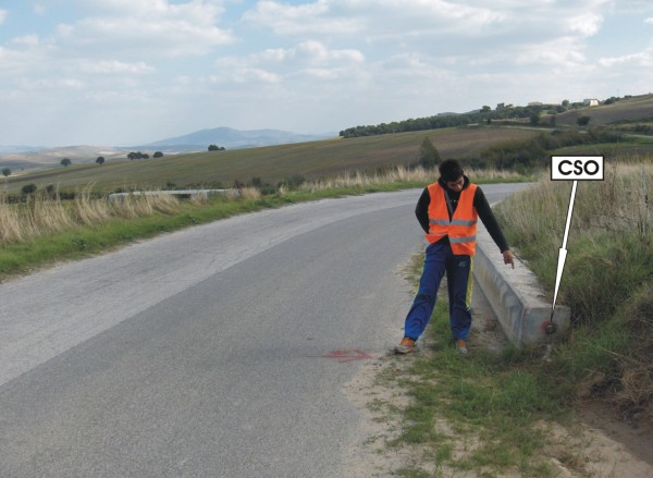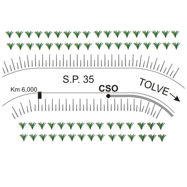 | Contrassegni | [{"simbolo_contrassegno":"B1","materializzazione":"(CSO) – Bullone infisso nella testata del cordolo di contenimento, a monte della S.P.35 al km 6,100."}] |