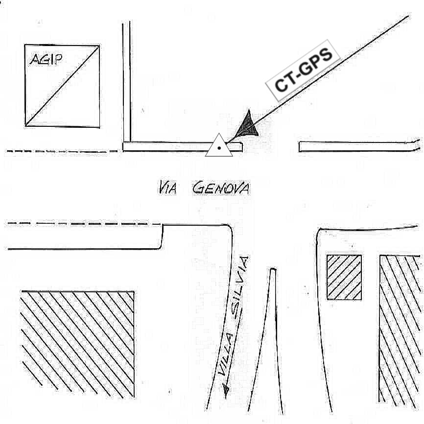 | Materializzazione | Centrino in acciaio inox materializzato sul muretto destro nei pressi del distributore di carburante di fronte a Villa Silvia. |