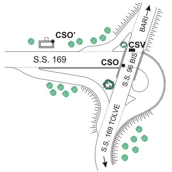| Contrassegni | [{"simbolo_contrassegno":"B1","materializzazione":"(CSO) – Bullone infisso nel muro di sostegno del cavalcavia della S.S.96 BIS, a destra proseguendo in direzione Bari, presso lo spigolo destro."},{"simbolo_contrassegno":"B4","materializzazione":"(CSO') – Centrino universale orizzontale cementato sullo spigolo esterno destro della fontana, posta sulla sinistra della S.S. in direzione Bari a circa 180 mt dal CSO. (Idoneo stazione GPS)."},{"simbolo_contrassegno":"V6","materializzazione":"(CSV) – Piastrina con cilindretto murata sul muro di sostegno del cavalcavia opposto al CSO, presso lo spigolo sinistro."}] |