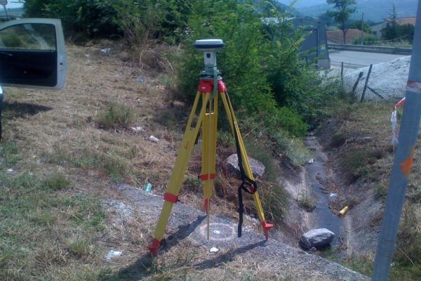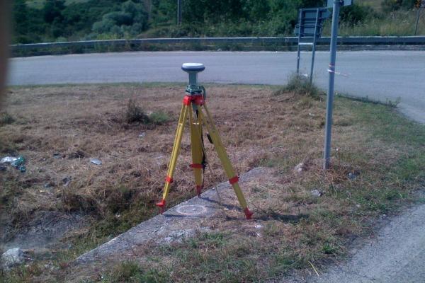 | materializzazione | Centrino metallico orizzontale di tipo chiodo con rondella ARPAB Regione Basilicata infisso sulla spalletta in C.L.S. tombino stradale. |