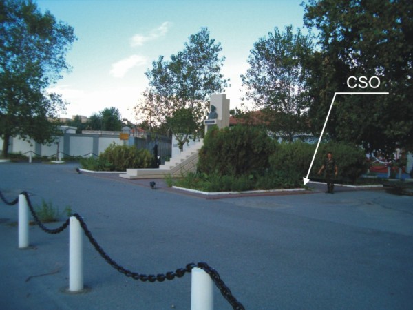 [{"simbolo_contrassegno":"B4","materializzazione":"(CSO) Centrino universale in acciaio inox del tipo GPS da livellazione, infisso sullo spigolo nord-est, della prima aiuola a destra guardando il monumento."}]