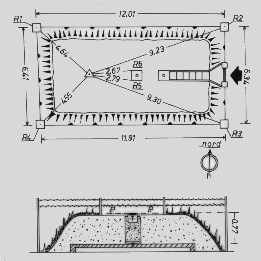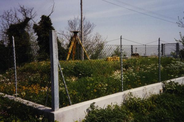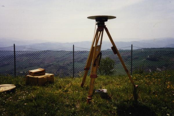 | Materializzazione | Centrino del tipo "GPS A" fissato su preesistente centrino IGM del tipo di superficie, cementato in blocchetto prefabbricato, con sottostante centrino di fondo coassiale cementati nella copertura in calcestruzzo del serbatoio. |