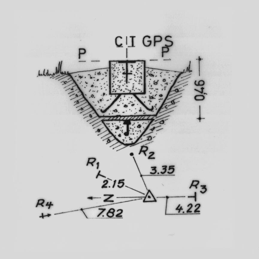 | Materializzazione | Centrino IGM di un blocchetto prefabbricato con sottostante centrino di fondo del tipo "VP" coassiale, posto alla sommità del colle a nord del cimitero di Monte Romano. |