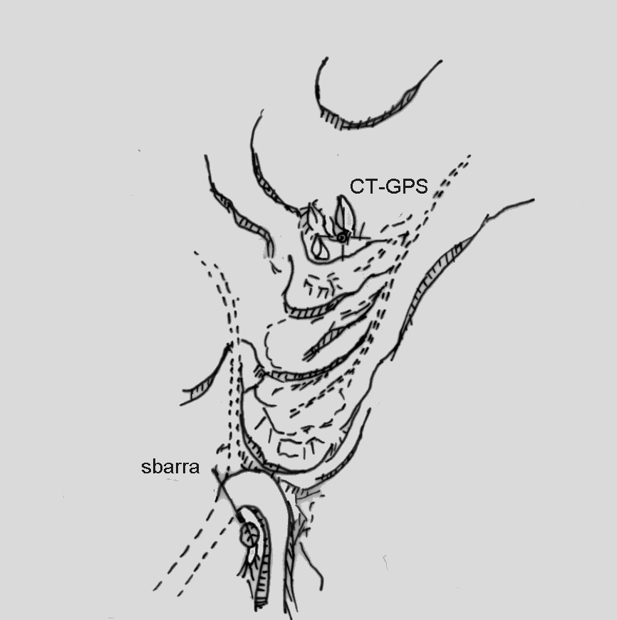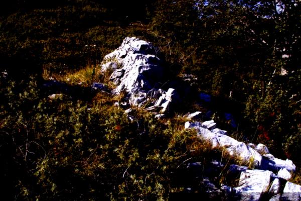 | Materializzazione | Centrino in acciaio inox, uguale a quello del tipo "GPS C" ma senza scritte, con affiancata targhetta blu recante le caratteristiche tecniche del punto, infisso in roccia affiorante. |