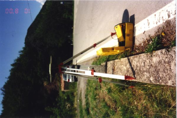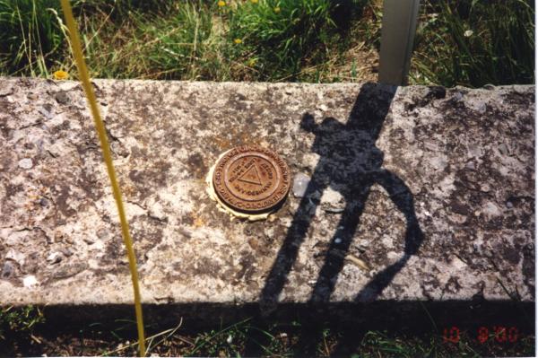 Centrino che materializza un "punto fiduciale GPS" del Dipartimento del Territorio – Catasto della Provincia di Lucca, infisso nel muretto in calcestruzzo circa 20 metri a nord di una cappella votiva.