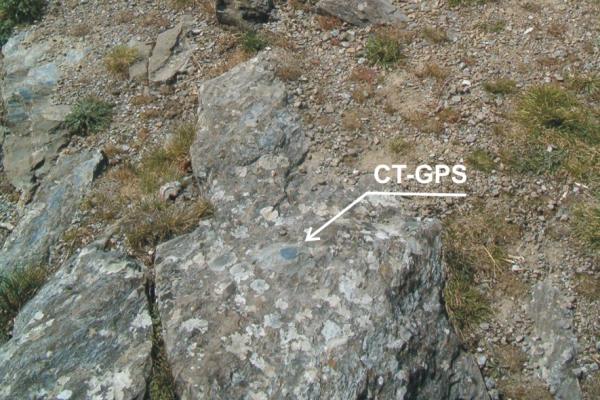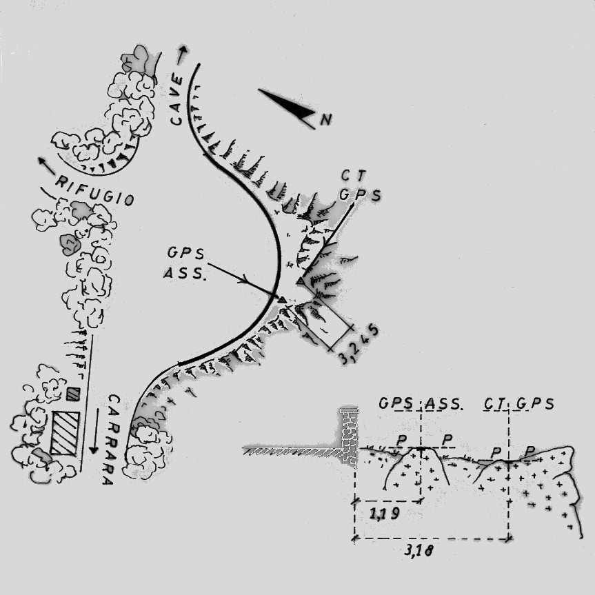 | Materializzazione | Centrino del tipo "GPS C" infisso su una roccia sita sul lato esterno del parapetto che delimita il piazzale di Campo Cecina. |