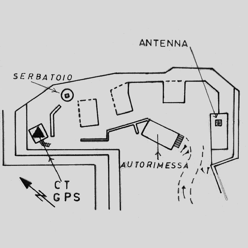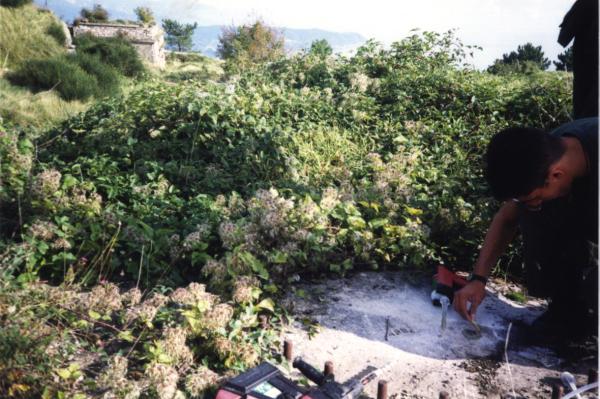 Centrino del tipo "GPS C" fissato alla sommità di una piazzola in cemento armato posta a nord-ovest dell'ex Forte diruto Parodi, della Marina Militare sito sulla cima del Monte omonimo.