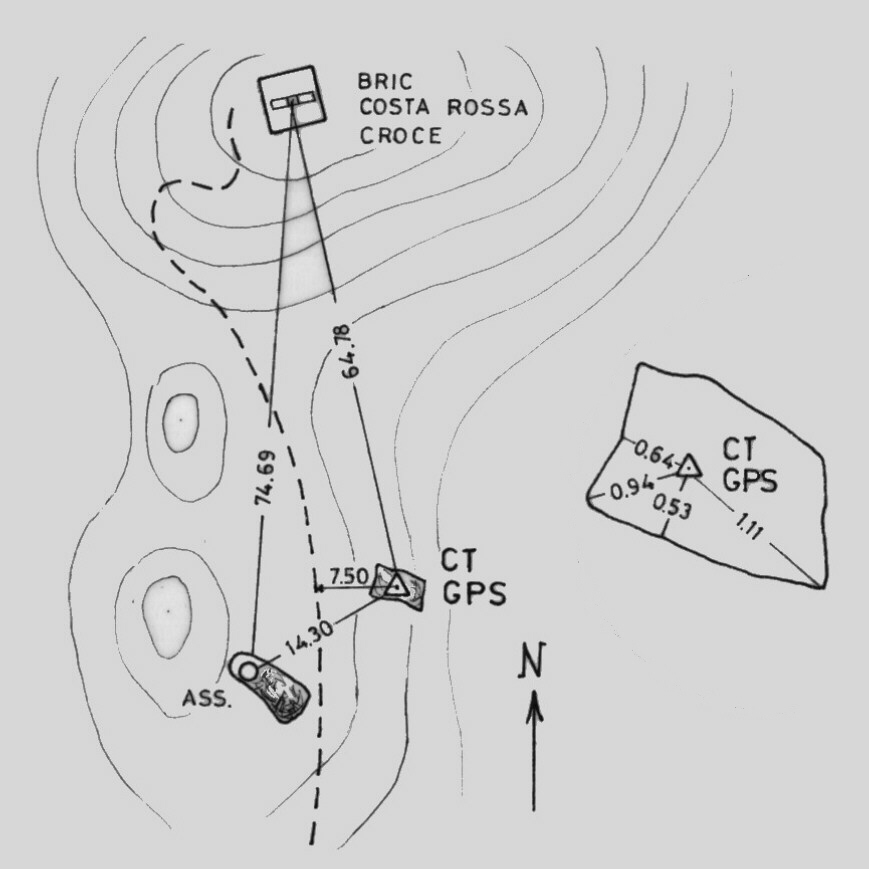 | Materializzazione | Centrino di tipo "GPS C" infisso su roccia affiorante, circa 65 metri a sud dalla cima e a pochi metri dal sentiero che sale. |