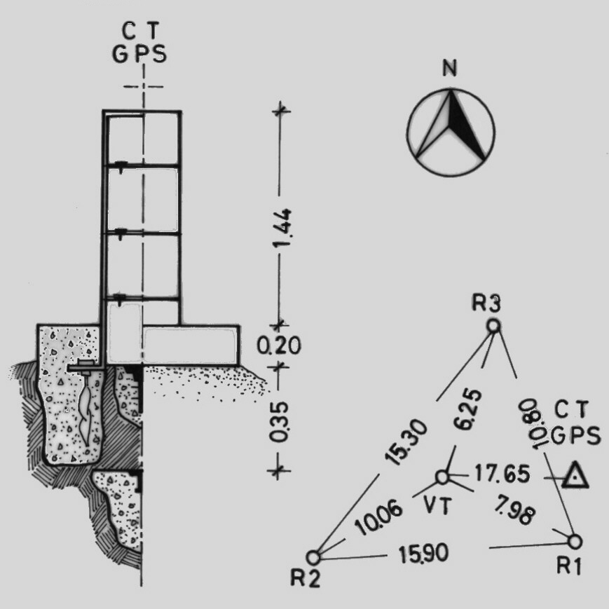 | Materializzazione | Centrino del tipo "GPS A" fissato alla sommità ed in corrispondenza dell'asse geometrico del pilastrino metallico a sezione triangolare esistente sulla cima del monte omonimo. |