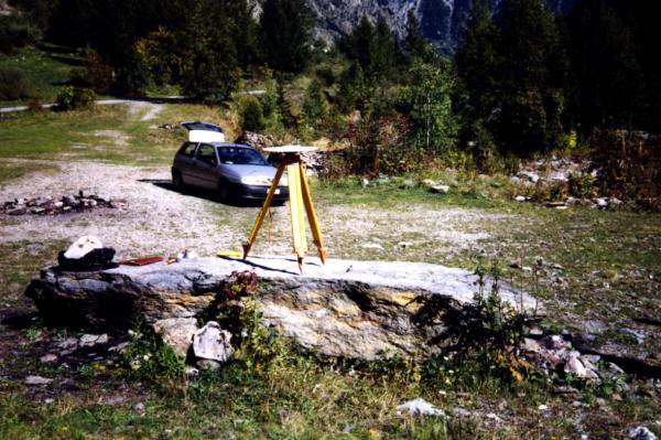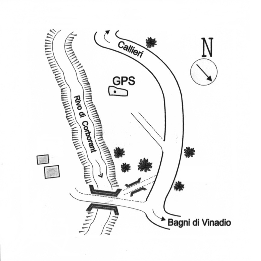 | Materializzazione | Centrino in acciaio inox del tipo "GPS C" infisso nella roccia isolata situata nello spiazzo esistente tra la strada che da Bagni di Vinadio conduce a Callieri ed il torrente Rivo di Corborant. |
