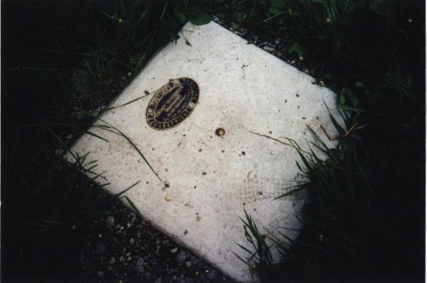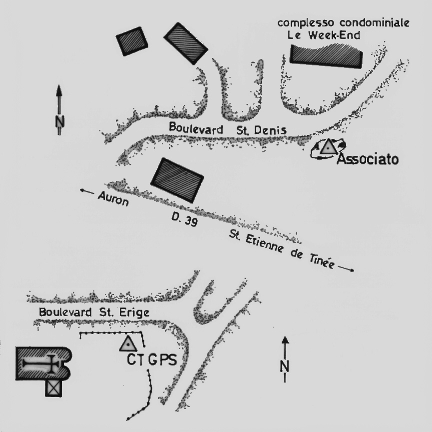 Chiodo in ottone del diametro di 25 mm, a testa semisferica, infisso in un basamento di calcestruzzo a pianta quadrata (su cui è presenta anche una piccola targa ovoidale dell'IGN), adiacente alla recinzione in legno che delimita il parco giochi per bambini lungo il Boulevard St.Erige, ad est dell'abside della Chiesa parrocchiale.