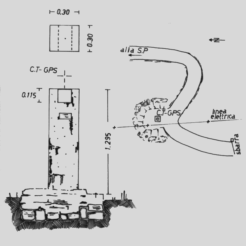 | Materializzazione | Piastra metallica con foro centrale cementata alla sommità di un pilastrino a sezione quadrata. |